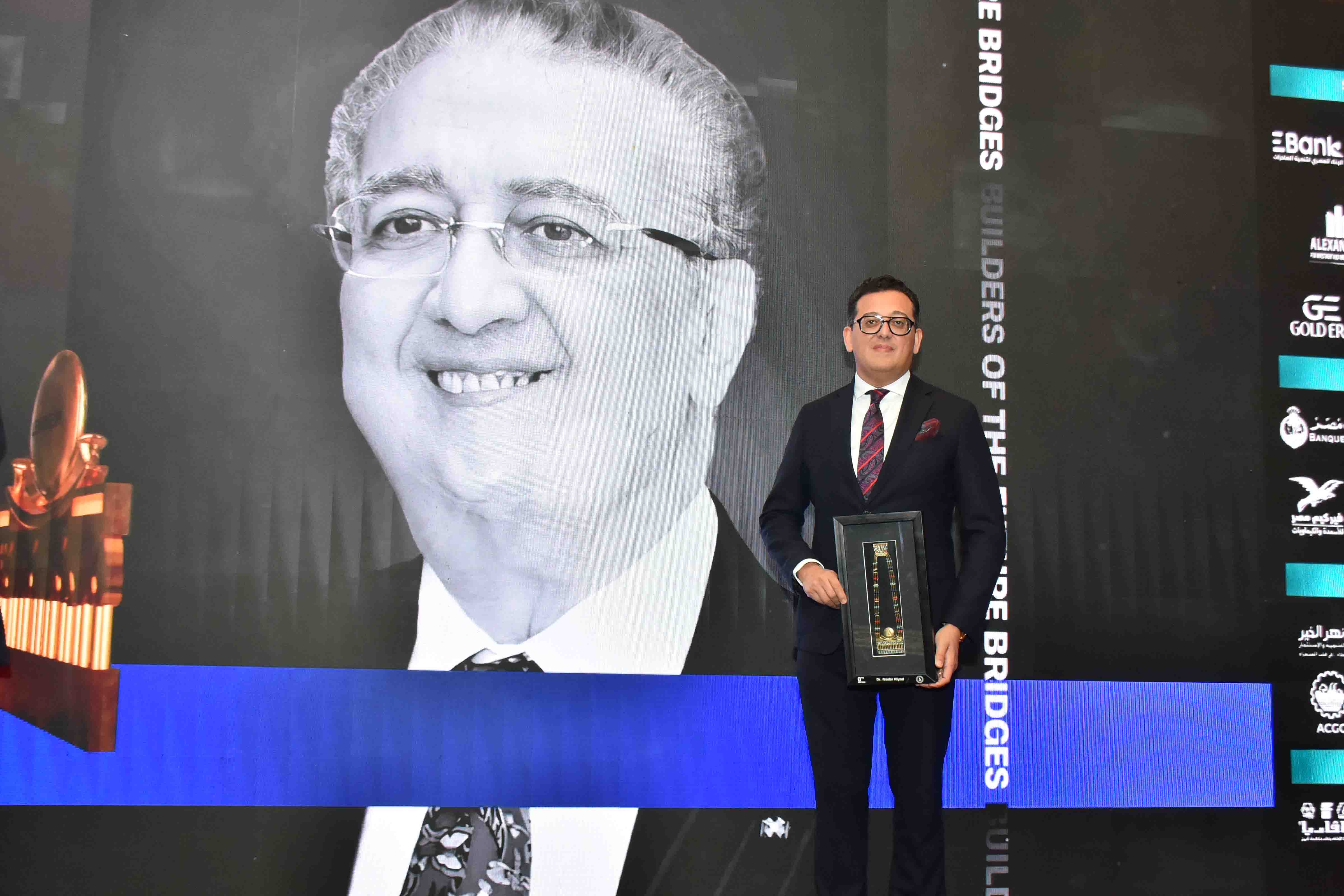 كرمت احتفالية 2026 LEADERS  الدكتور نادر رياض رئيس مجلس الإدارة تقديرا لإسهاماته في دعم وإثراء الاقتصاد الوطني ، ووفاءا لمسيرته الحافلة بالعطاء ،بمنحه قلادة " توت عنخ آمون "  كرمز يحمل دلالة عميقة ويجسد امتداد الجسور بين عظمة الماضي وانجازات الحاضر ورؤية المستقبل ، تسلمها نيابة عن سيادته الأستاذ / أمير رياض نائب رئيس الإدارة.