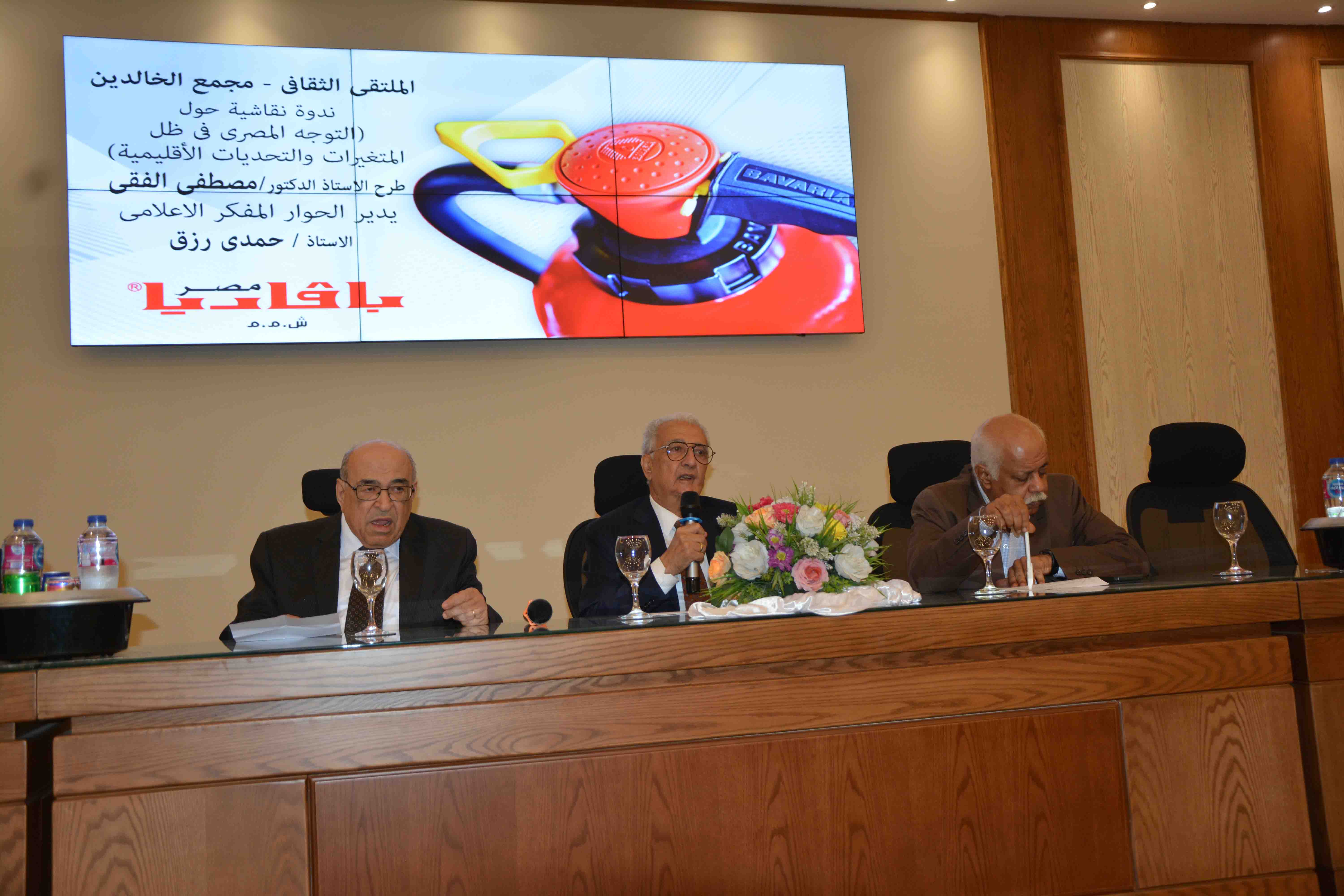 إطار الفعاليات والندوات التي يحرص على إقامتها السيد الدكتور / نادر رياض رئيس مجلس الإدارة بالمركز الثقافي بمجمع الخالدين بالشركة .استضاف المركز الكاتب والمفكر السياسي الدكتور / مصطفى الفقى وذلك يوم الثلاثاء 20أغسطس في ندوة تحت عنوان "التوجه المصري فى ظل المتغيرات والتحديات الإقليمية".