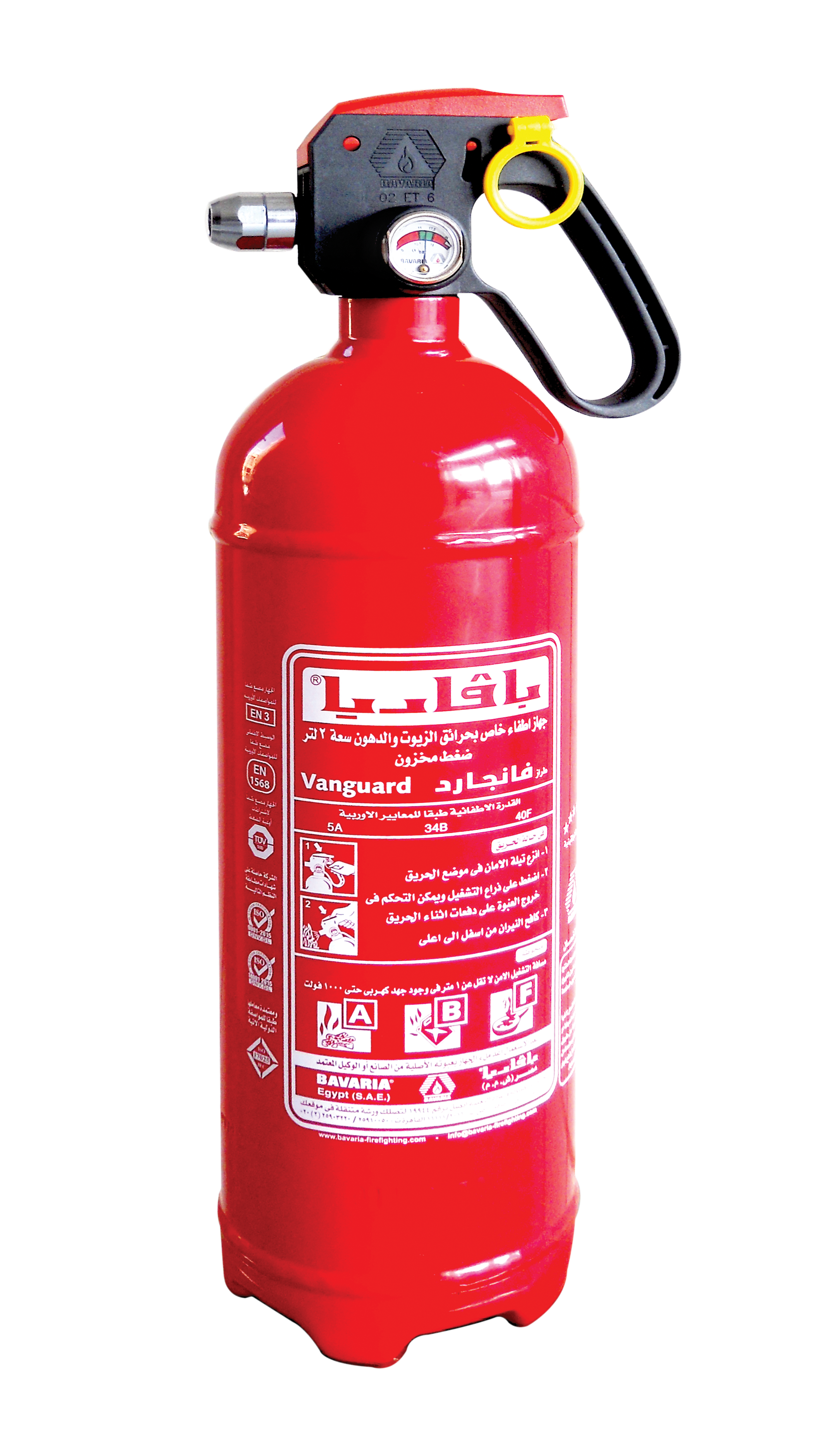 Filled with 2 l wet chemical liquid, is designed for protecting fire kitchens, oil, fats and grease.