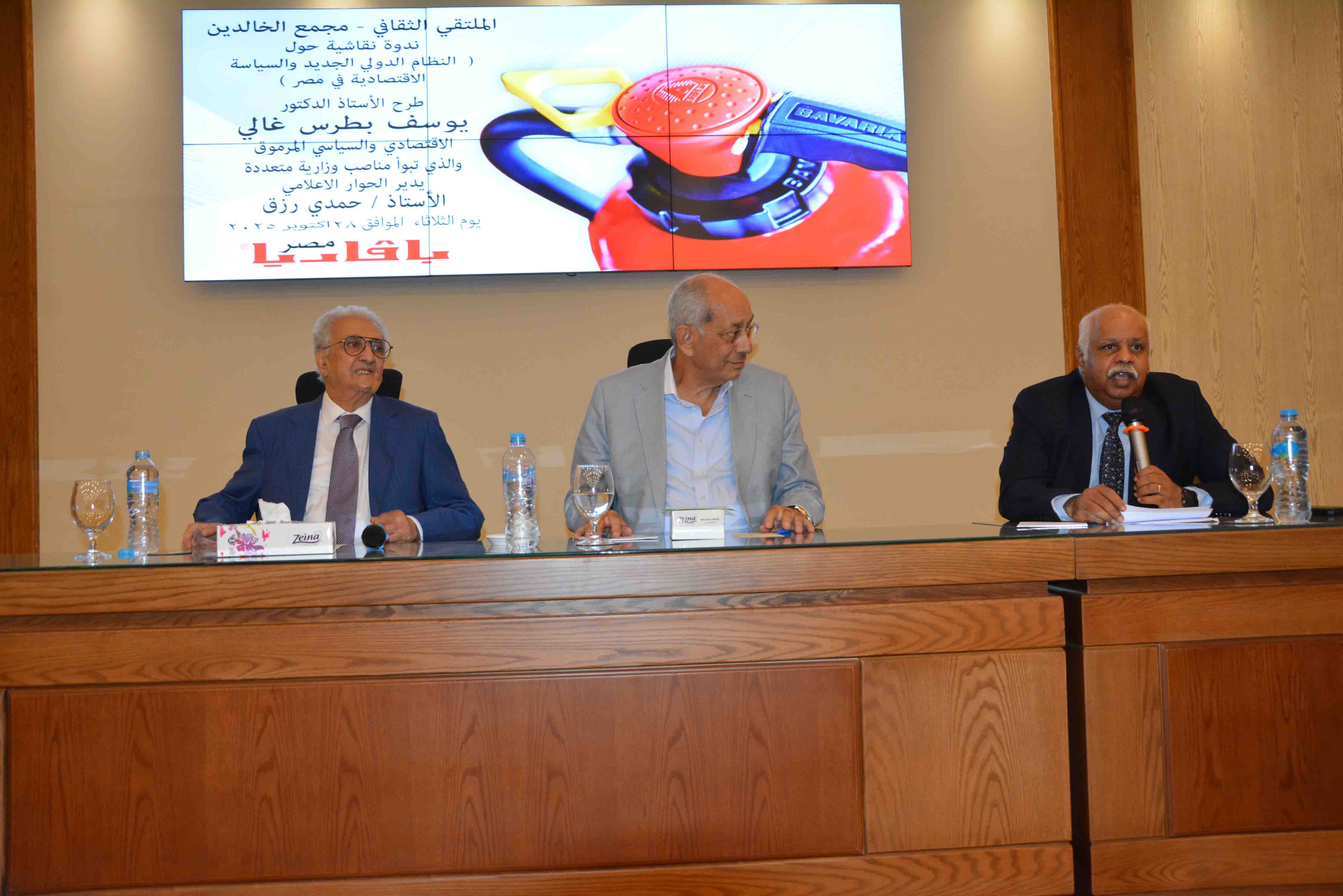 في إطار الفعاليات والندوات التي يحرص على إقامتها السيد الدكتور / نادر رياض رئيس مجلس الإدارة بالمركز الثقافي بمجمع الخالدين بالشركة ،استضاف المركز الكاتب الصحفي الدكتور/ أسامة السعيد رئيس تحرير جريدة الأخبار في الندوة تحت عنوان ( دور مصر فى نظام دولى متغير)أدارها المفكر الاعلامى الأستاذ / حمدي رزق يوم